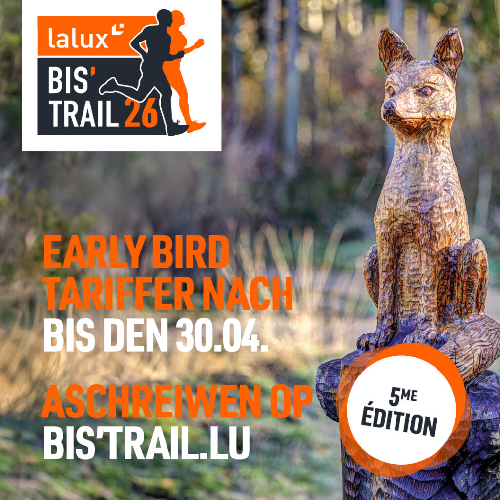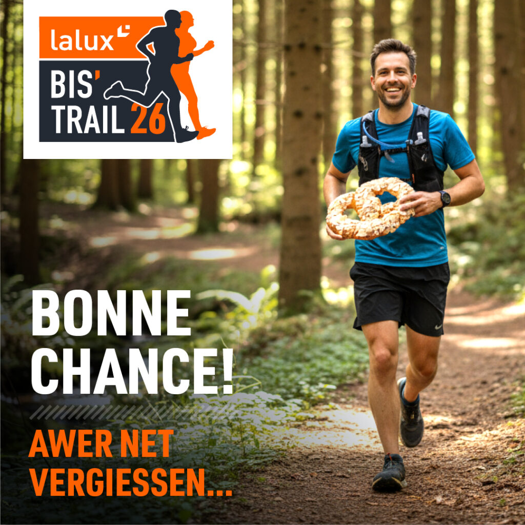 Kommt a genéisst déi schéin Biisser Natur a schreiwt iech fir den LALUX Bis’Trail 2026 an! Early Bird nach bis den 30.04.